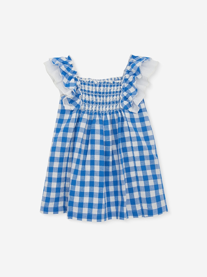 Очаровательное детское платье в клетку «Виши» из смеси 100% органического хлопка и льна. Платье не только выглядит великолепно, но и обеспечивает максимальный комфорт для вашей маленькой модницы.